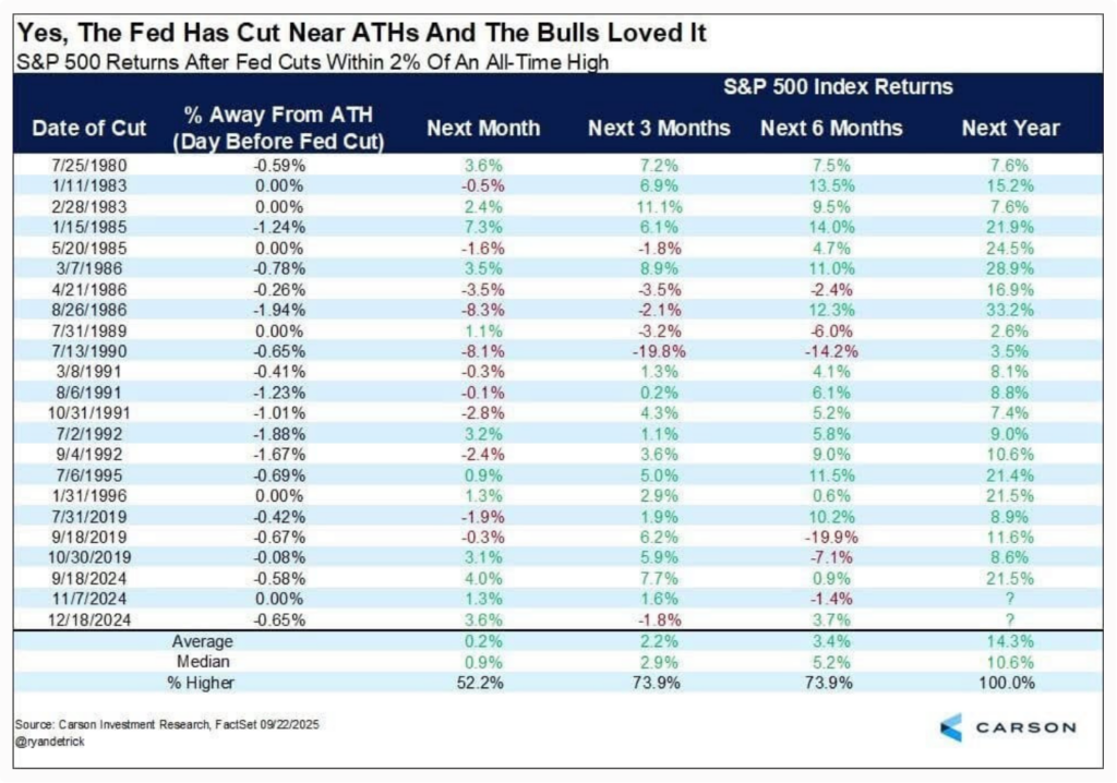 On average, the US market gave around 14 percent return one year after these rate cuts. This is higher than the normal long-term average of 8 to 9 percent. This shows that rate cuts near market highs have often been positive for investors.