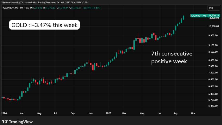 Gold, meanwhile, is writing its own dramatic story. Prices rose 3.47% just this week, marking seven consecutive weeks of gains—a rare streak. From ₹9,900 per gram to nearly ₹11,700 in less than two months, gold has surged nearly 17–18%. Such moves are rarely random; they reflect deeper global unease. With the Indian rupee weakening against the U.S. dollar, and the dollar itself losing ground against other currencies, Indian investors are being hit on both sides. In such an environment, gold isn’t just an asset—it becomes a store of purchasing power.