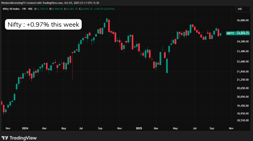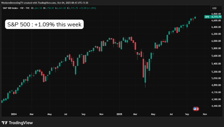On the global front, the U.S. markets continue to chart a very different path. The S&P 500 gained another 1.09% this week, extending a rally that shows no signs of fatigue. Unlike India, which peaked earlier and has since struggled to regain momentum, U.S. markets have powered ahead relentlessly since September 2024. The divergence between the two is stark, reflecting differences in flows, sectoral leadership, and investor sentiment across geographies.