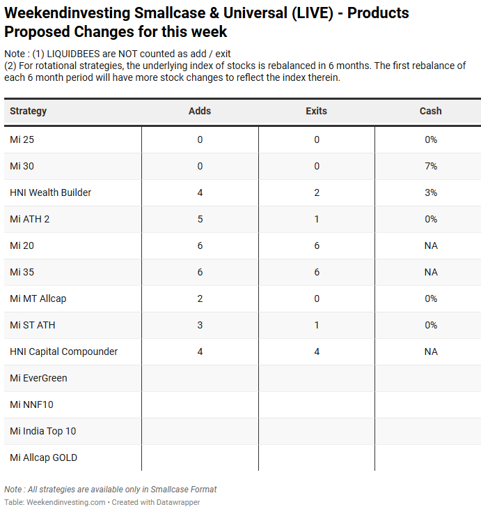 We give advance notice here on the upcoming changes in your smallcase for Monday. This advance notice can be used to ignore Monday’s update if there is no change. If there is a change indicated you