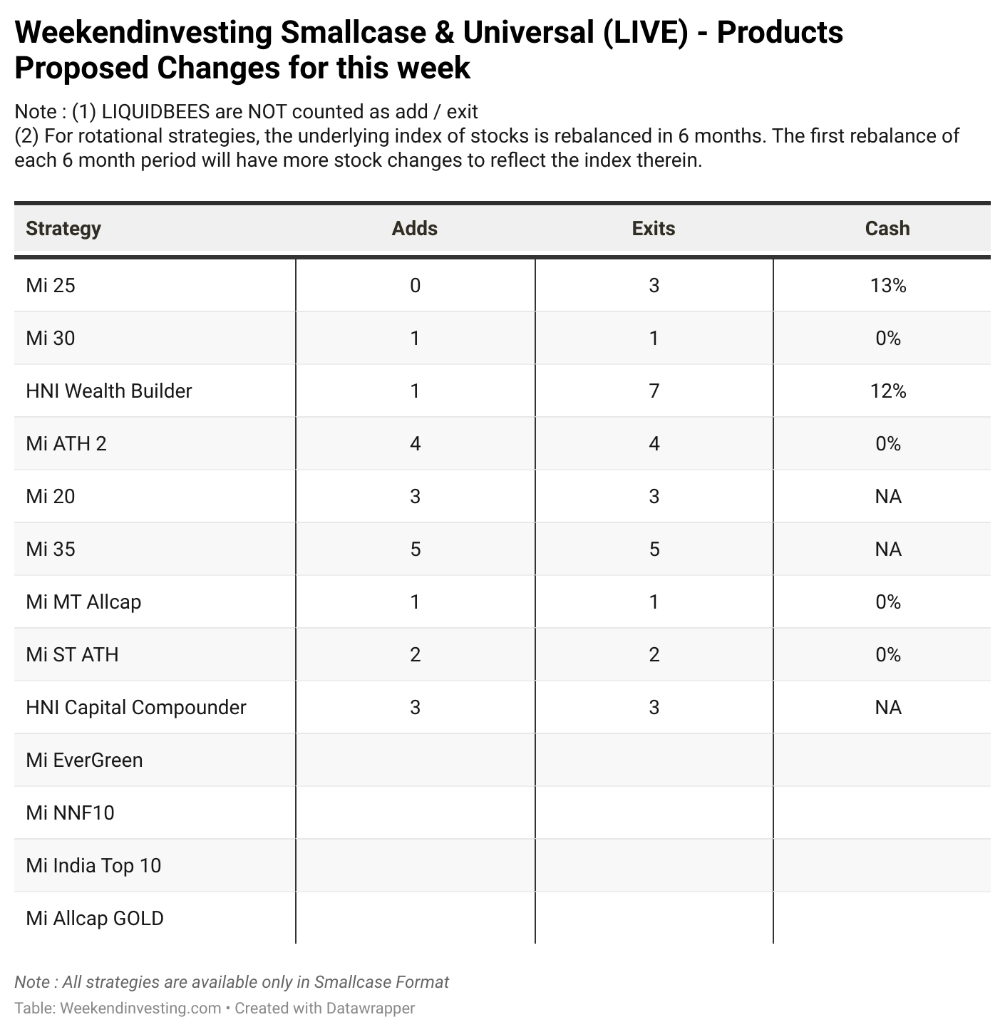 We give advance notice here on the upcoming changes in your smallcase for Monday. This advance notice can be used to ignore Monday’s update if there is no change. If there is a change indicated you