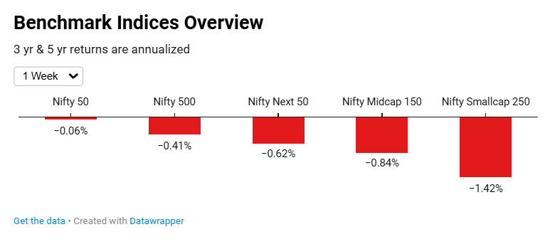 It was a mixed week for the markets — one that clearly exposed the divide between the resilient large caps and the bleeding small caps. While the Nifty 50 managed to stay relatively steady, the small and micro-cap segments continued to face heavy selling pressure. This widening divergence has created a peculiar scenario where the headline index looks stable, but a large section of investors are sitting on portfolio losses. The RBI’s interest rate cut this week brought some cheer, but its impact was largely restricted to large caps, with liquidity yet to trickle down meaningfully into the broader market. In essence, this is a market of two realities — the strong getting stronger at the top, and persistent pain underneath.