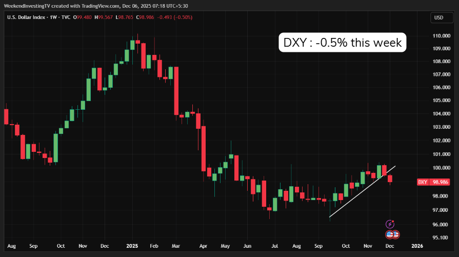 Dollar Index, on the other hand, began to decline, a development that typically supports emerging markets and precious metals — a potential tailwind if it continues.