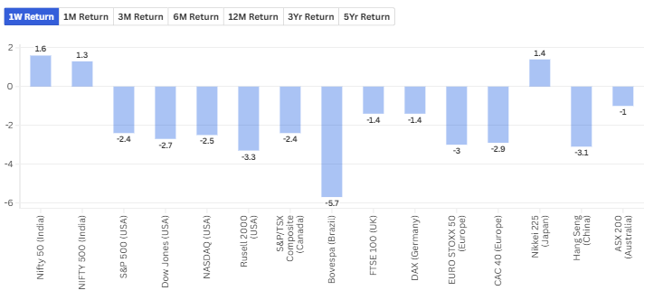 U.S. markets too saw a sharp fall on Friday, one of the steepest in recent sessions, hinting that stress is building up under the surface. The coming week is likely to be volatile, and leveraged traders need to be extremely cautious. This is a phase where sticking to a disciplined strategy is critical, rather than reacting emotionally to headlines.
