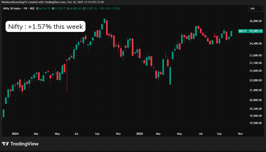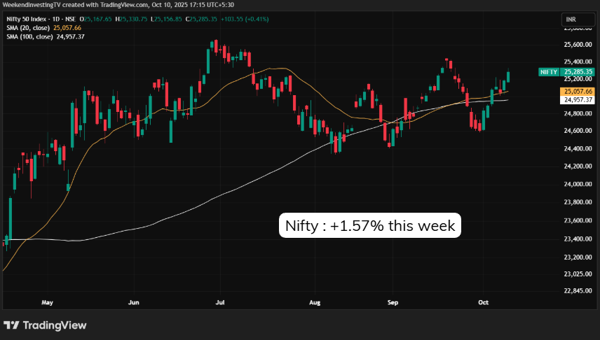 On the domestic front, the Nifty’s daily structure was actually looking quite strong before this global turbulence began. Over the last seven sessions, the index climbed steadily from 24,600 to 25,285, delivering a 1.57% weekly gain, which by all standards is a healthy performance. The market showed resilience, buying every dip and refusing to break below its established support zones. The price action suggested that momentum was building for a potential technical breakout.