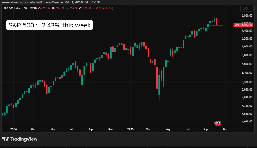 The S&P 500 closed the week down 2.43%, with most of that damage coming in a single session. Still, the U.S. index is far above previous resistance zones, indicating that while there is short-term panic, structurally it has not broken down. Any continuation of fear-driven selling, however, could shift sentiment sharply.