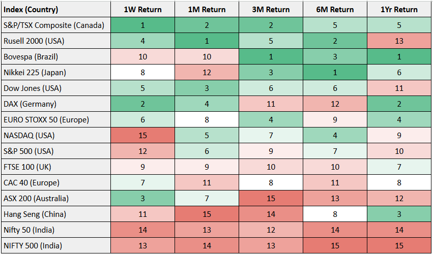 From a global leadership momentum raking perspective, Canada, US small caps, Brazil, and Japan are leading, with Germany and Australia showing signs of recovery. India, however, continues to sit near the bottom of the global rankings, waiting for its next cycle of outperformance to begin.