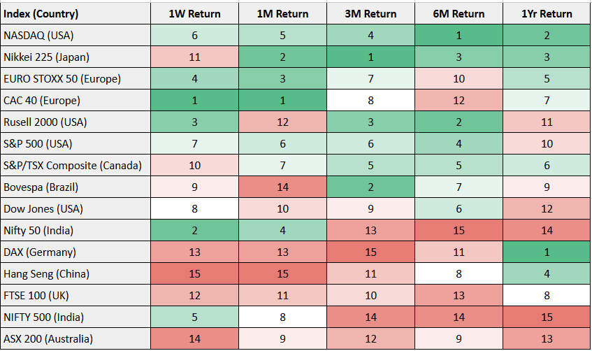 Looking at the Global Momentum Score, India is still not a leadership market on a global relative strength basis, but it has climbed a few notches up from the absolute bottom, where it sat for months. Nasdaq, Nikkei and European indices are currently leading, but Nifty’s momentum reversal is notable and should be monitored closely.