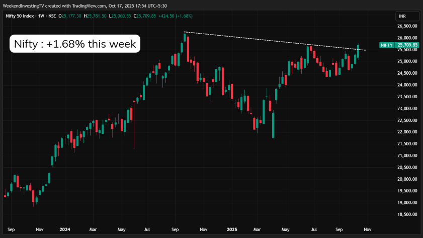 It has been a great week on multiple fronts. The first major positive development has been the visible thawing of Indo–US relations. The rhetoric around tariffs seems to have cooled, and the market is sensing that the worst of the tariff war may already be behind us. There is growing expectation that announcements easing trade tensions could be around the corner. The market, as always, is forward-looking, and it is already pricing in improved diplomatic tone and potential tariff rollbacks.