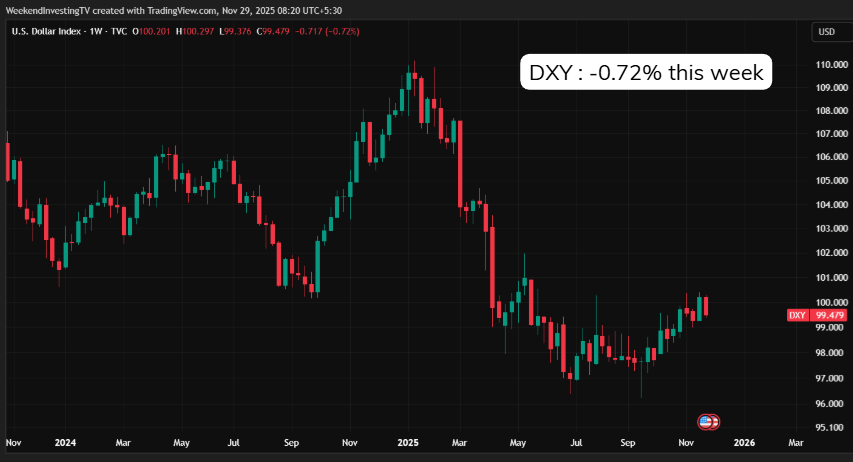 Dollar Index slipped 0.72% this week. The U.S. administration continues to prefer a weaker dollar to boost exports, but so far, the currency hasn’t rolled over meaningfully. Once that decline begins, it could unlock another phase of risk-on sentiment globally, especially for emerging markets.