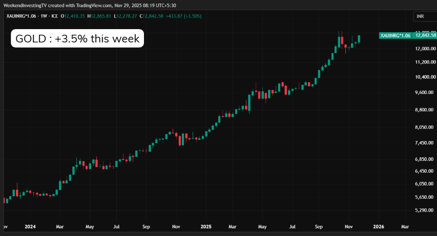 Meanwhile, gold surged 3.5%, also clocking a record high at ₹12,842 per gram. This parallel rise across equities and gold underlines one key theme — the money base is expanding again. Liquidity remains abundant, and in such an environment, “everything goes up” — from stocks and real estate to precious metals. The underlying message is simple: in a world awash with liquidity, being uninvested carries its own cost.