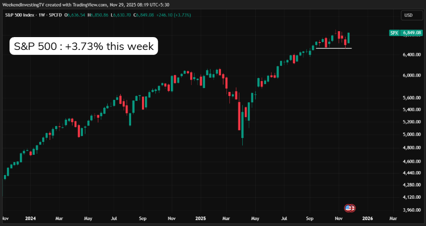 S&P 500 rebounded sharply, rising 3.73% after four weeks of losses and closing at an all-time high. The turnaround suggests that the recent correction might have just been a pause, not a reversal.