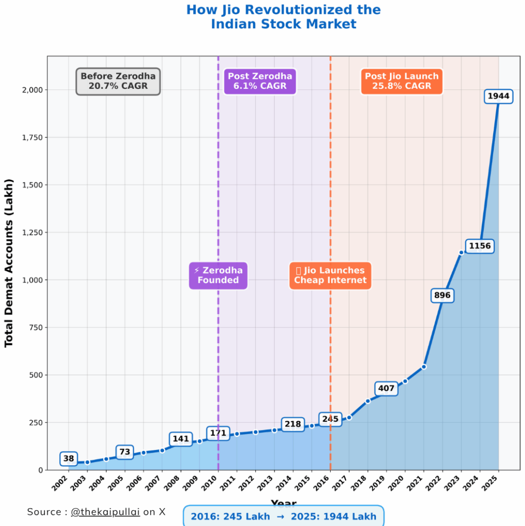 The real change began when affordable internet became widely available in India after the launch of Jio. Suddenly, millions of people across the country had cheap and fast internet access on their mobile phones. This digital revolution brought financial apps and trading platforms into everyone’s hands. For the first time, investing was no longer limited to big cities or to those with desktop computers.