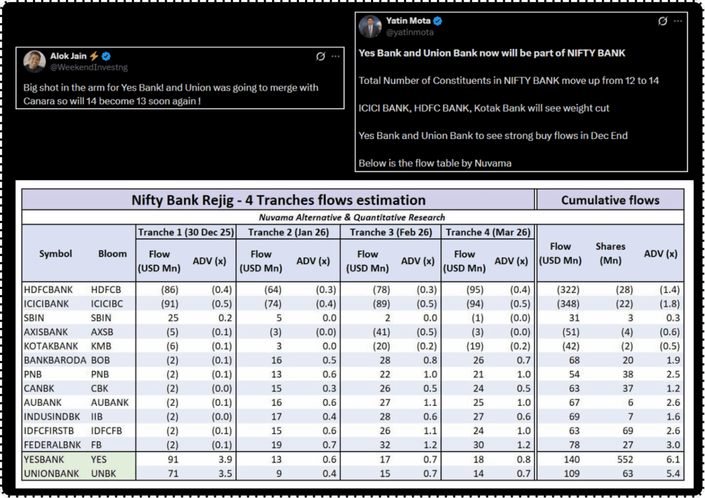 In the ‘Tweet of the Day’ segment, we have a tweet from Yatin Mota stating that Yes Bank and Union Bank will now be included in the Nifty Banking index. This index currently has 12 constituents, and with Yes Bank and Union Bank being added, ICICI, HDFC, and Kotak Bank will see a cut in their weightage.