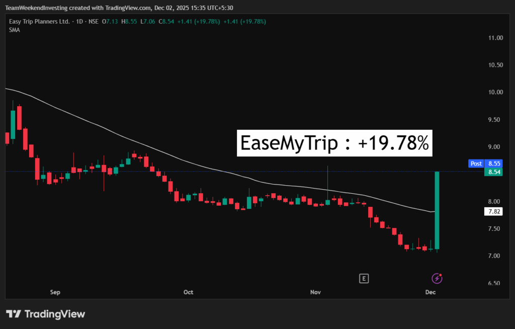 In the ‘Mover of the Day’ segment, Easemytrip jumped by 20%, seemingly due to the launch of a winter sale. The stock has been coming off significantly, down about 70 to 80% from its highs, so this nearly 20% gain in a single session is a welcome move for its investors.