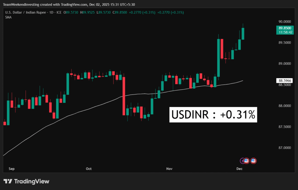 As mentioned, USD/INR is the focal point, closing at 89.85, up 0.31% today. This makes exporters happy, but generally, everything becomes more expensive for all of us.
