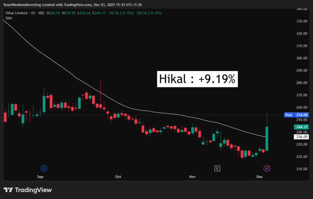 In the ‘Mover of the Day’ segment, Hikal surged 9% with significant trading activity. This suggests that some news or announcement is likely forthcoming, as other pharma stocks underperformed.