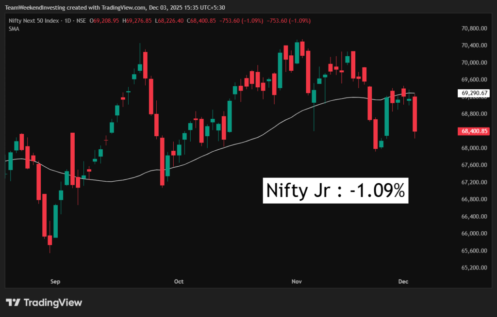 Nifty Junior also painted a fairly red picture, down by 1% today.