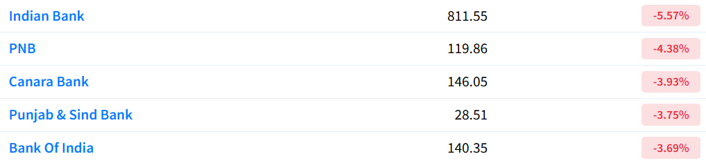 There were also small gains in Nifty Media and Nifty Financial Services. The slump in PSU banks like Indian Bank, PNB, Canara Bank, Punjab & Sind Bank, and Bank of India follows a substantial run-up over the last two to three months, indicating some mean reversion is likely occurring.