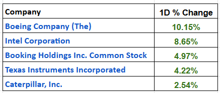 Individual stock performance was strong for Boeing Co., which flew up 10%, Intel up another 8%, Booking Holdings up 5%, and Texas Instruments and Caterpillar also moving higher. Some of these stocks may be part of the Weekend Investing US stock strategy, but please note these are not recommendations.