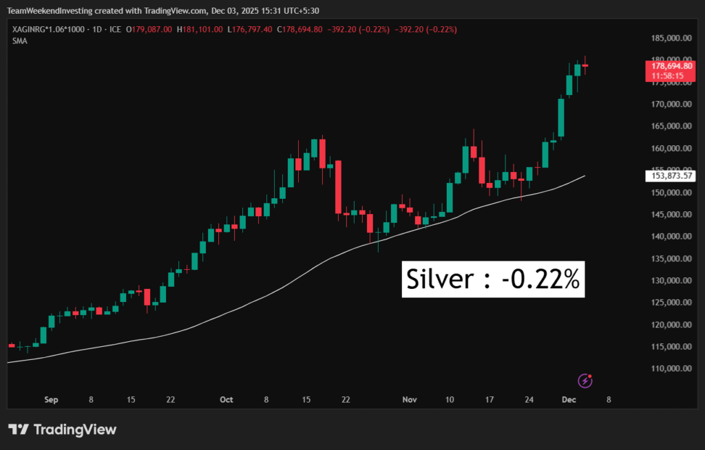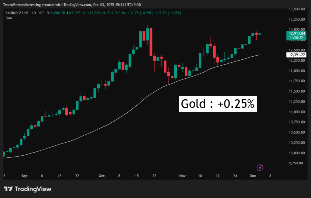 Gold remained steady, up 0.25% at 12,900, and Silver was also steady at 1,78,000.