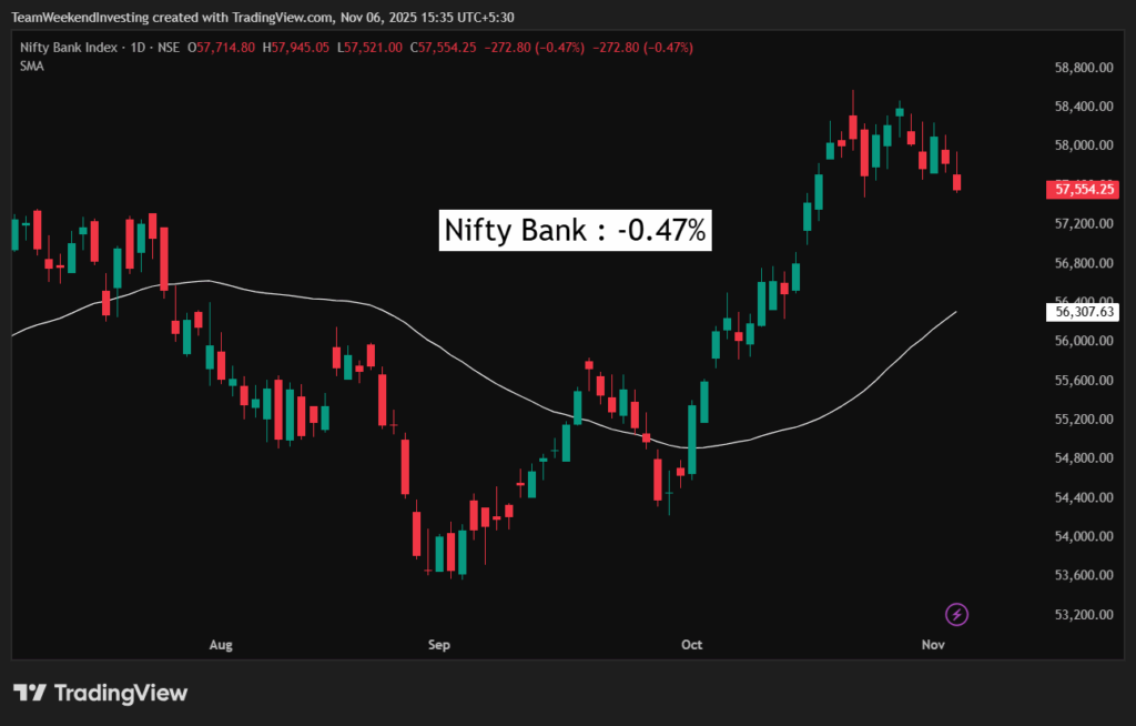 The Bank Nifty is slightly better, down only 0.47%, but it doesn’t look extremely good either. It has spent about 10 or 12 days consolidating in the 57,500 to 58,500 zone without breaking out.