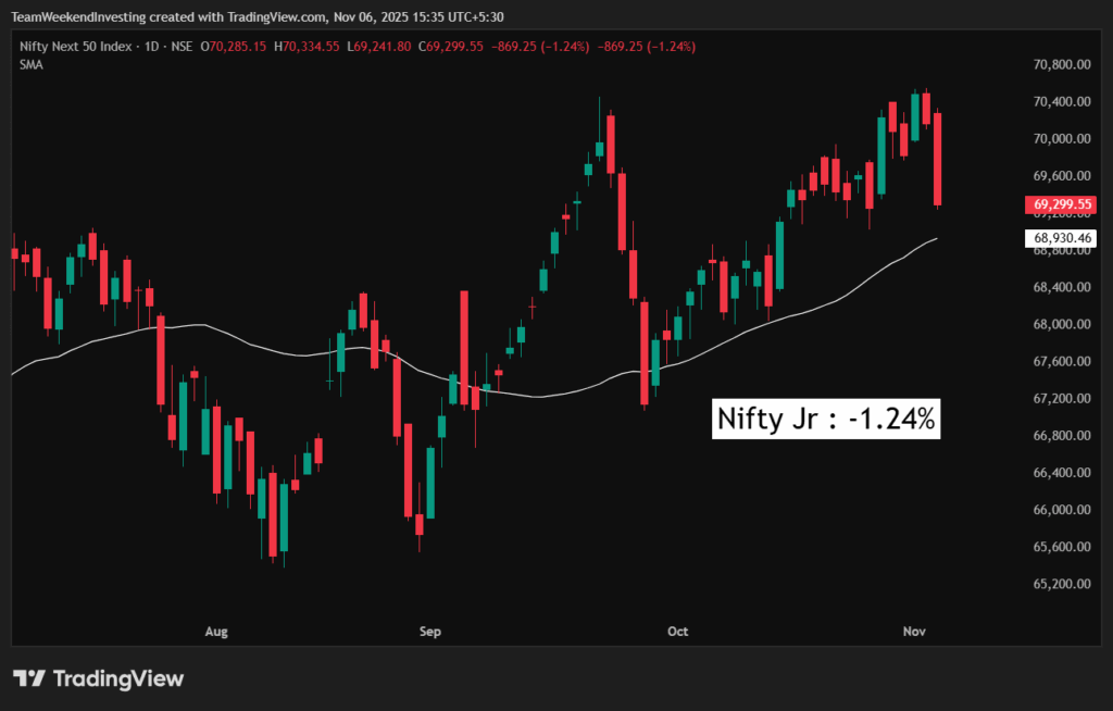 The Nifty Junior saw a massive fall of 1.24%, which is certainly triggering a shorting wave in Nifty Next 50 stocks.
