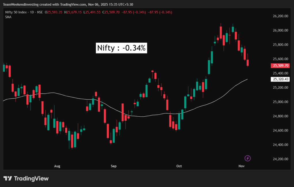 The markets right now are looking very, very dull and are correcting. We’ve already lost about 600 points from the recent peak, and there are no immediate triggers in sight. A slight sense of discomfort in the global markets seems to be causing jitters, especially across the AI and semiconductor spaces. We’ve seen Taiwan stocks bleeding quite badly, and Japanese stocks also took a hit over the last few days. It appears there might be some sort of a topping or a pause in the massive AI wave we’ve been witnessing, with people now beginning to question its trajectory.