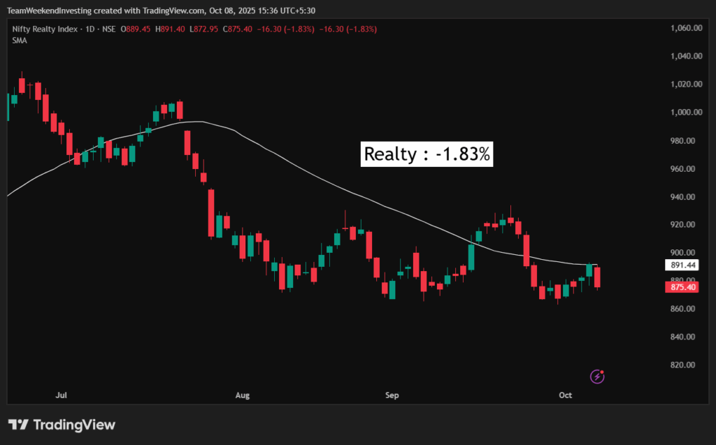 Over the last three months, Nifty Auto, PSU banks, and Metals have shown some gains, but overall, it’s been a downward phase. Real estate, after a brief rally, is again seeing selling pressure, with Anant Raj, Oberoi Realty, Signature, Godrej, and DLF all down.