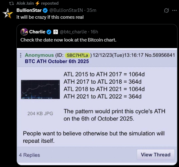 There was also a fascinating observation on Bitcoin’s cyclical pattern. From its all-time low in 2015 to its high in 2017, Bitcoin took 1064 days. Then it dropped from the 2017 high to the 2018 low in 364 days. From that 2018 low to the 2021 high, again, it took exactly 1064 days. And from the 2021 high to the next low, it again took 364 days, which ended on October 6th.