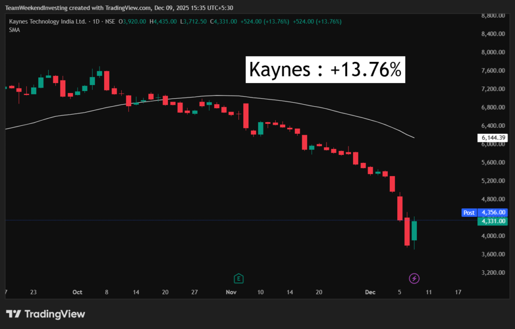 In the Mover of the Day segment, we had some big move coming in, Kaynes Tech. Kaynes Tech dropped like 30% in the last few sessions and has recovered back 13% of it today. So it’s almost like a dead cat bounce after a fall of that kind of magnitude. The stock was nearly 8,000 and we recently came down to 3,600.