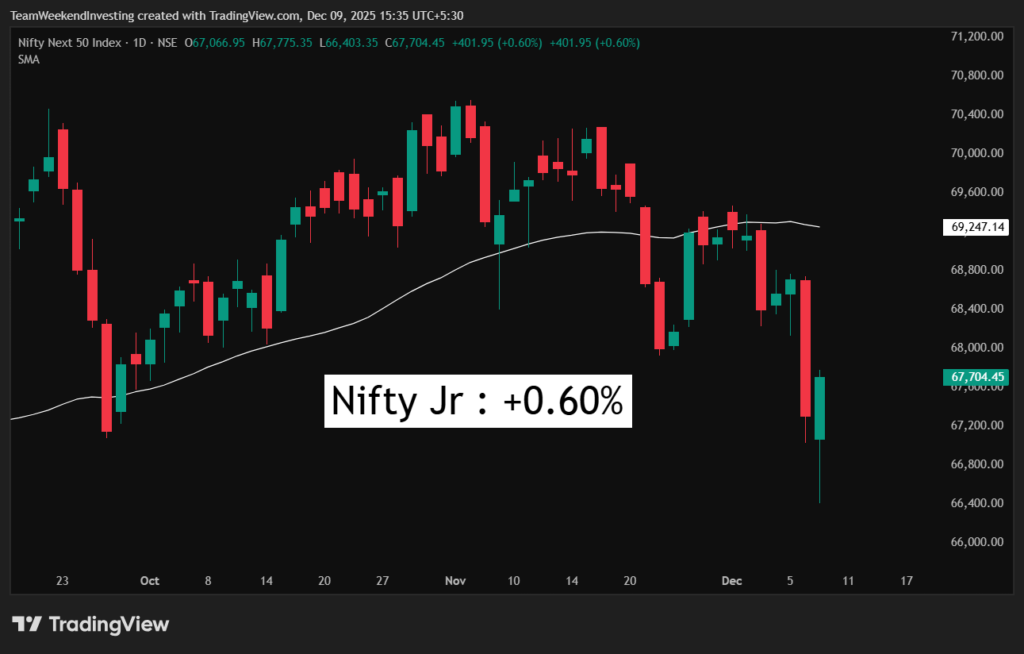 Nifty Junior is up half a percent. You can see it climbed back from 66403. So that was a good climb back, almost 1300 points. But the structure remains weak here as well.
