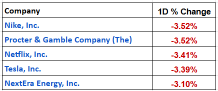 In the US markets on the previous session, all indices were down mildly: 0.3% – S&P500, 0.45% – Dow Jones, Nasdaq – 0.1% and Russell almost flat. You had Nike, Procter & Gamble, Netflix, Tesla and NextEra Energy losing 3 to 3.5%. Some of these stocks could be part of the Weekend Investing stock strategy in the US. These are not recommendations. This is the disclaimer.