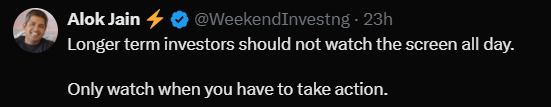 Tweet of the day two is around behavior of investors. A lot of people are basically watching the screen, watching the ticker all the time. You know, you have 20, 30 stocks in your portfolio and you’re watching those prices all time, all the day.