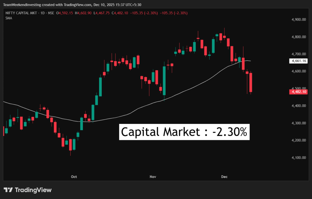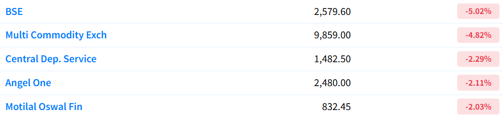 BSE, MCX, CDSL, Angel One, and Motilal Oswal were all smashed down in the capital market space.