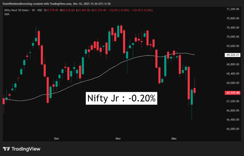 Nifty Jr. was down 0.32% today. The dead cat bounce that started yesterday morning did go high, but today we failed to capitalize on that bounce and go further.