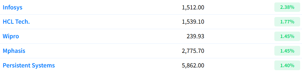 In the IT space, Infosys, HCL Tech, Wipro, Mphasis, and Persistent all performed well.