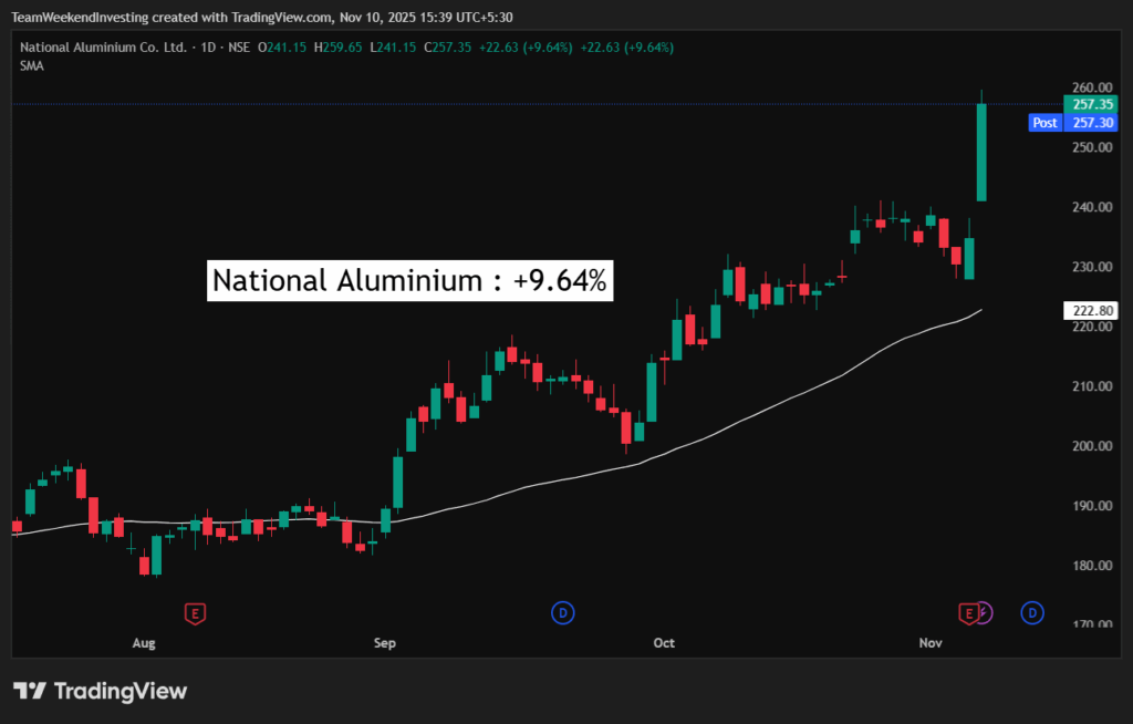 National Aluminium was a major mover of the day, running up 9.64% due to a good dividend declaration and strong results.
