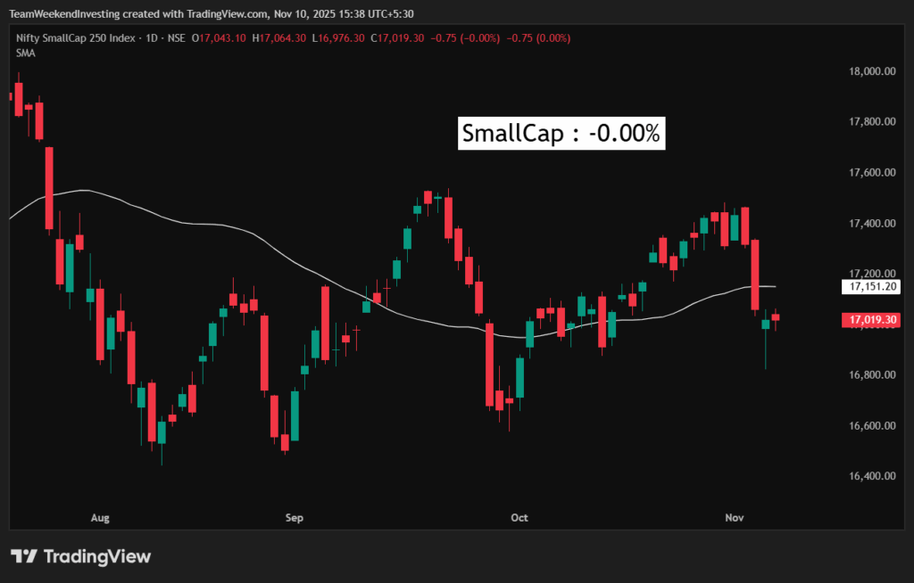 Mid Caps rose 0.45%, and Nifty Bank gained 0.1%. Small Caps, however, were completely flat, up 0%, showing no movement despite the rest of the market’s slight uptick. Overall, the market lacks real inherent strength right now and seems to be experiencing a “rub off” effect from other running Asian markets.