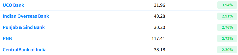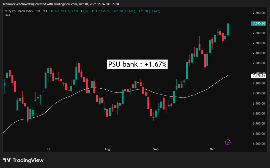 PSU banks are at new highs with names like UCO Bank, Indian Overseas Bank, PNB, and Central Bank of India leading the charge. Earlier it was autos driving the rally, but now PSU banks and metals are taking the lead.