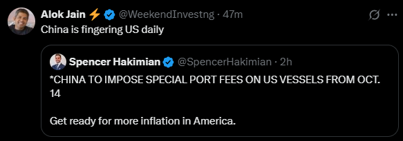 On the geopolitical front, China and the US are on a more combative path again. China has started imposing special port fees on US vessels and may further restrict exports of rare earth metals to the US.