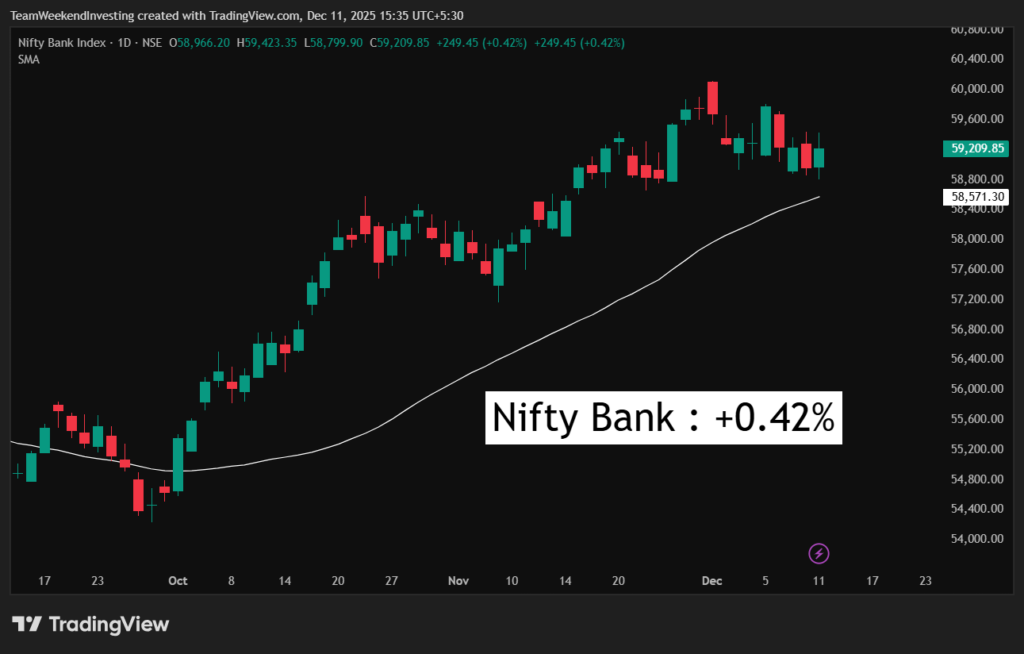 The Nifty Bank index moved up 0.42%, staying within its recent range for the third consecutive day without a decisive move, but managing to hold its ground.