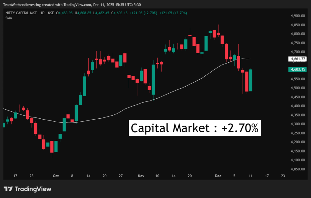 The Capital Market sector has recovered all losses from the previous session, with KFin Technologies, BSE, Angel One, and Nuvama all recovering very well.