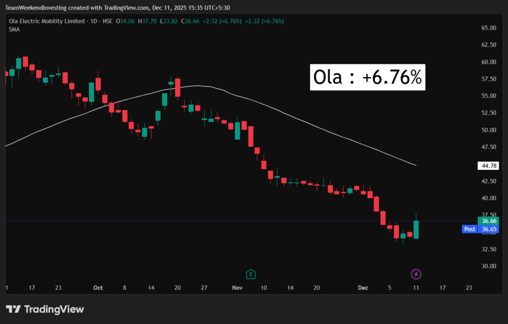 In the mover of the day segment, Ola Electric moved up 6.76%. This jump occurred despite the S&P downgrade of the promoter ANI Technologies, possibly indicating a dead cat bounce, a pattern observed many times in the past for this stock, which has disappointed many investors.