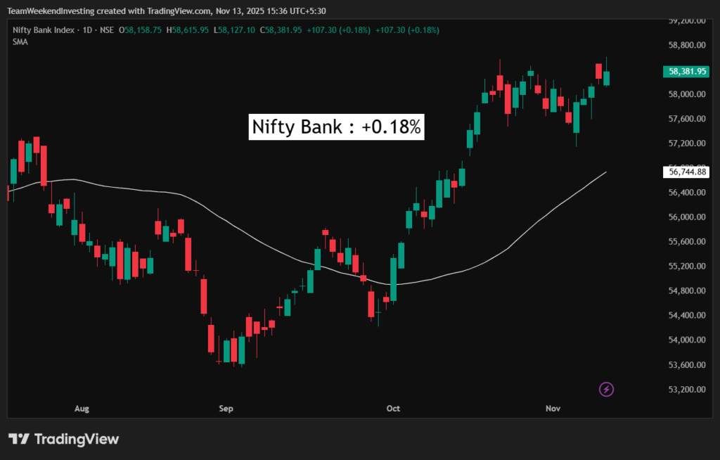 The Nifty Bank was up 0.18%, which is not consequential but shows it is still hanging in there near the top.