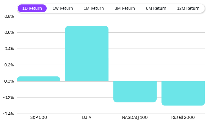 The US markets in the previous session saw the Dow Jones go up 0.6%, while the S&P 500 and Nasdaq were absolutely flat, at 0% and -0.26% respectively, and the Russell 2000 was down 0.3%. Over the last month, the leading US indices—Nasdaq, Dow Jones, and S&P—have performed well.