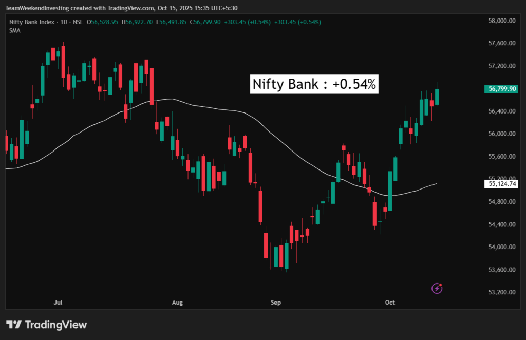 Bank Nifty gained 0.54%, reaching its highest level since the end of July.