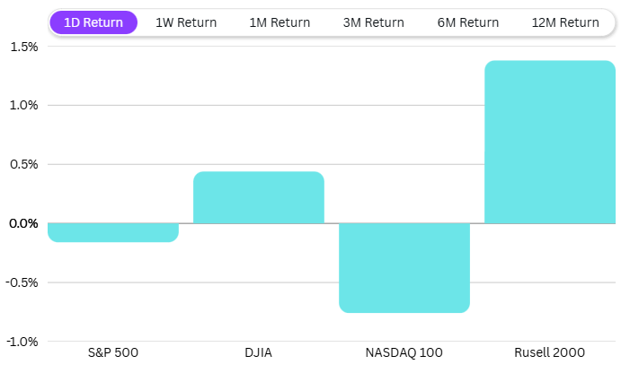 In the US, markets were flat yesterday. The S&P 500 was down 0.16%, Dow Jones was up 0.4%, Nasdaq slipped 0.76%, and Russell 2000 gained 1.38%. Even there, we can see some rotation towards small caps.