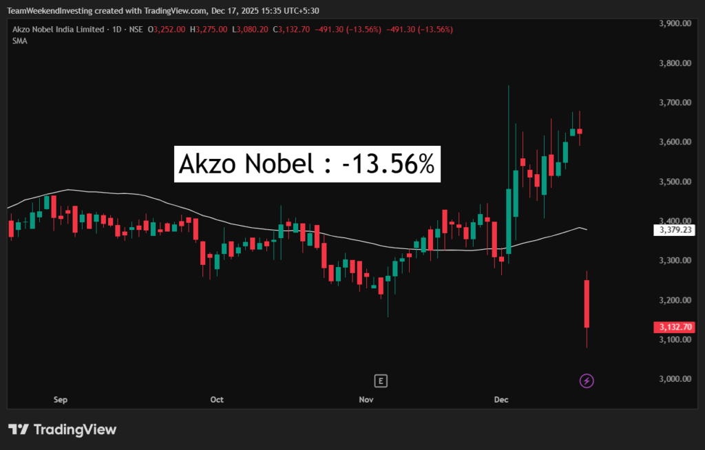 A major mover of the day was AkzoNobel, which plunged 13.56% following a 9% stake sale by its promoter. This reflects a growing trend in 2025 where foreign promoters are selling stakes in their Indian subsidiaries, often at a discount, believing them to be overvalued compared to their parent companies.