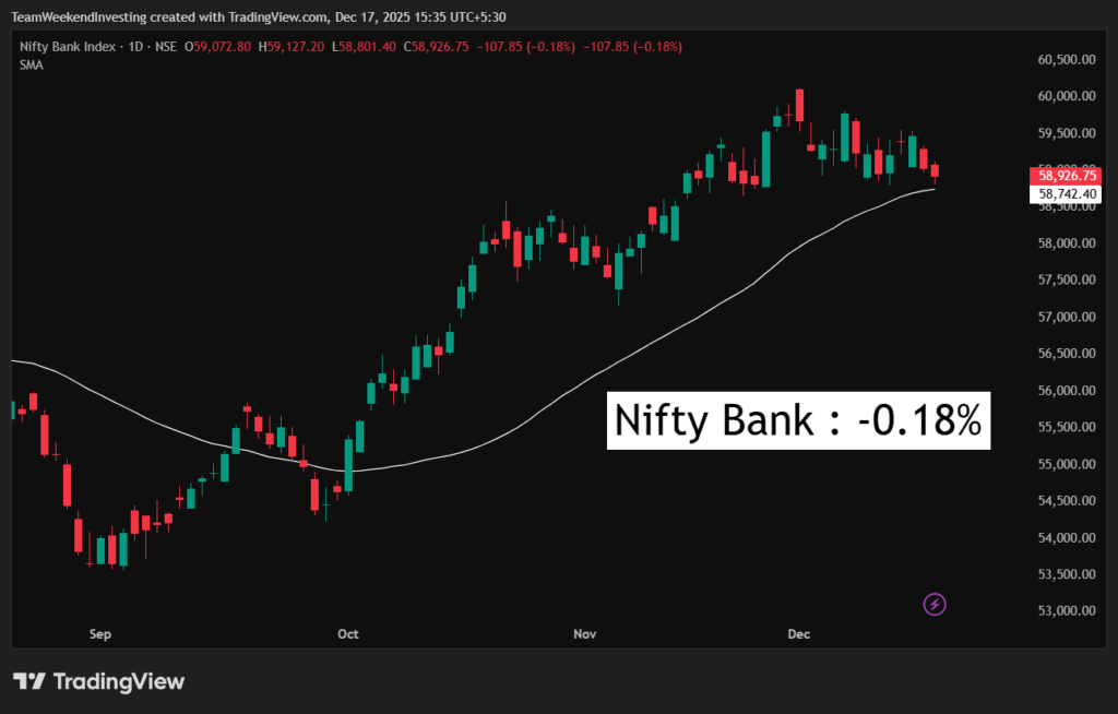 The Nifty Bank showed more resilience, closing down only 0.18%.